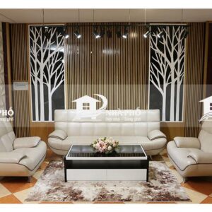 Vải bọc: là PVC cao cấp không thấm nước nên dễ vệ sinh, bề mặt nhẵn khó bám bụi bẩn, có sự đàn hồi tốt tạo kiểu dáng sofa mềm mại.